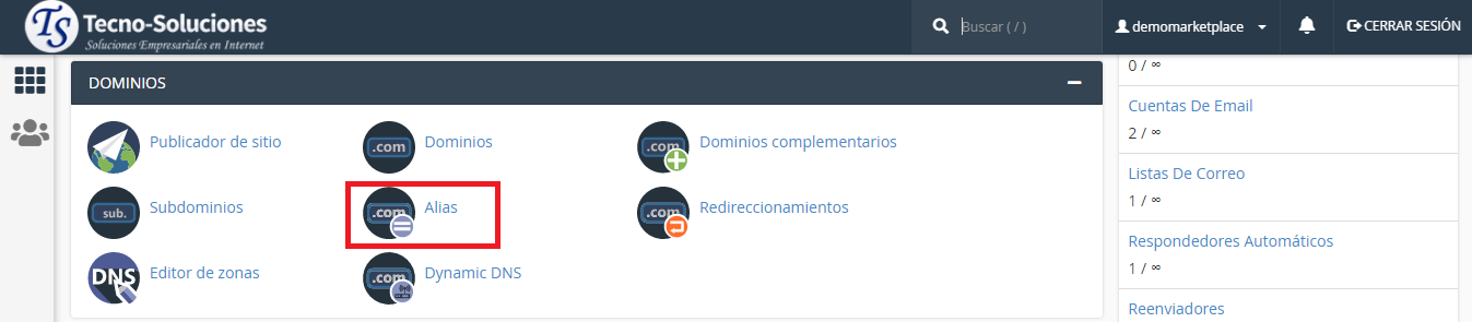 Para habilitar o deshabilitar la redirección de un alias de dominio, realice los siguientes pasos: