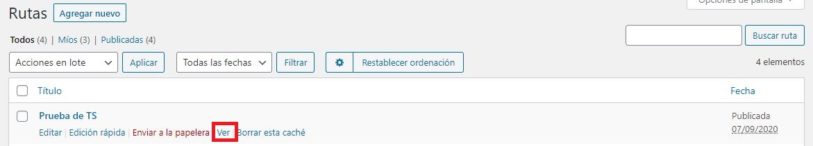 Esta opción nos permite ver la ruta a nivel web. Sin embargo, corresponde a cada módulo y su configuración mostrar la información al público. Para este caso solamente se puede observar el título de la ruta.