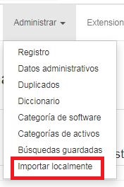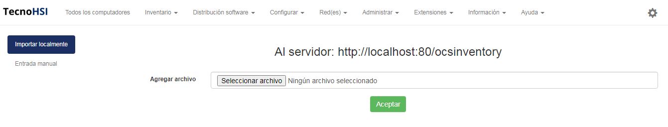 Haga clic en el menú Administrar de la barra de herramientas y luego en Importar localmente, busque en su disco duro para seleccionar el archivo “.ocs” o el archivo “.xml” creado por la versión del agente y haga clic en el botón [Enviar].
