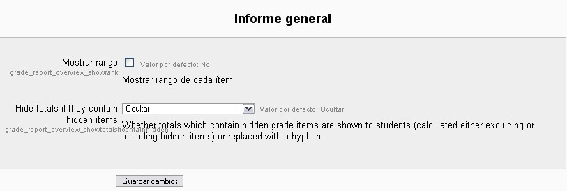Ubicación: Administración> Calificaciones> Ajustes de Informe de calificaciones > Informe general