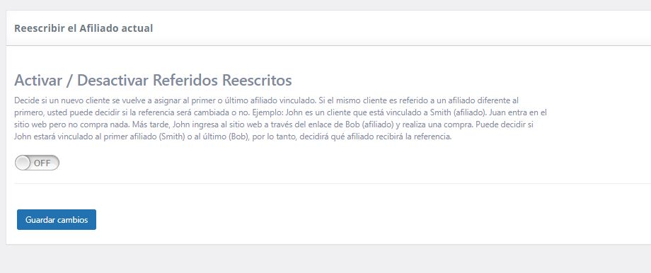 Este módulo le permite decidir si un nuevo cliente se reasigna al primer o al último afiliado vinculado. Si el mismo cliente es referido a un afiliado diferente al primero, puede decidir si se cambiará la referencia o no.