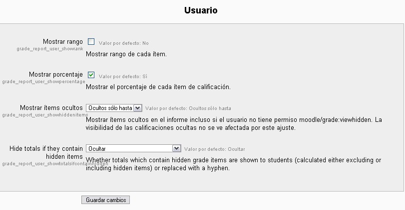 Ubicación: Administración> Calificaciones> Ajustes de Informe de calificaciones> Usuario.