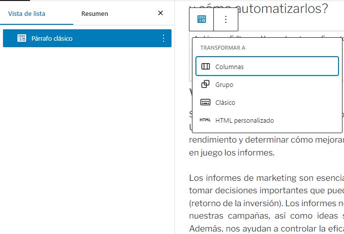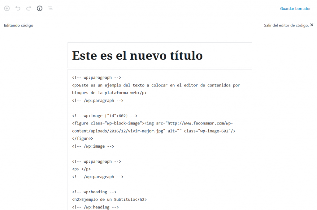 Esto nos permite ir directamente al bloque que deseamos editar dentro de la estructura de la entrada que estemos creando.