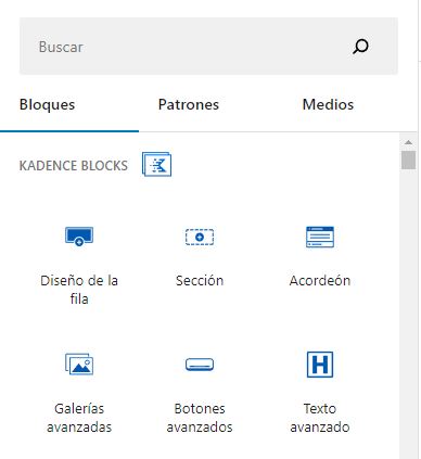El botón Añadir bloque abre la biblioteca de bloques para que podamos elegir cuál de éstos insertar en el documento.