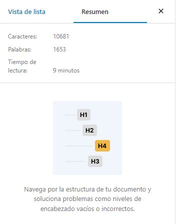 También muestra un esquema del documento donde podemos ver todos los encabezados con su orden jerárquico.