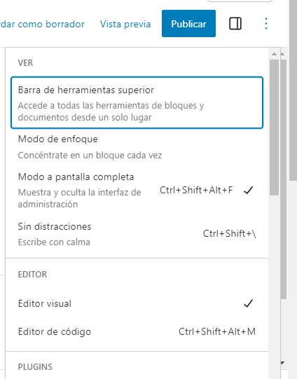 Como habíamos visto al principio, el editor cuenta con una barra de herramientas en la parte superior de la página.