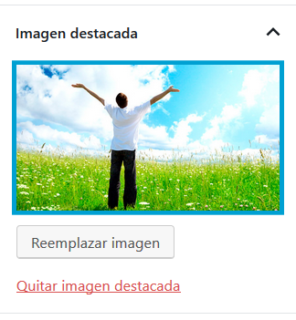 - Imagen Destacada: Permite asignar una imagen a ser usada en el resumen de cada entrada normalmente mostrado bajo la opción Blog del portal web.