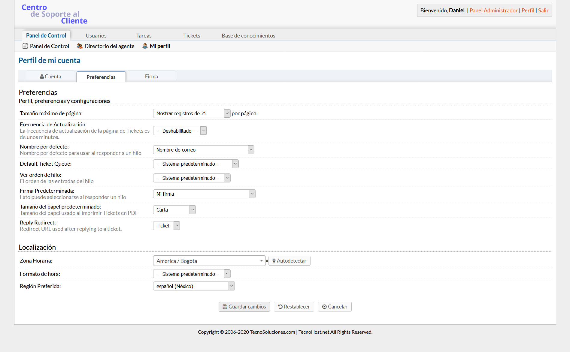 - Modo de vacaciones: el agente no recibirá notificaciones de tickets ni correos electrónicos hasta que se desactive.