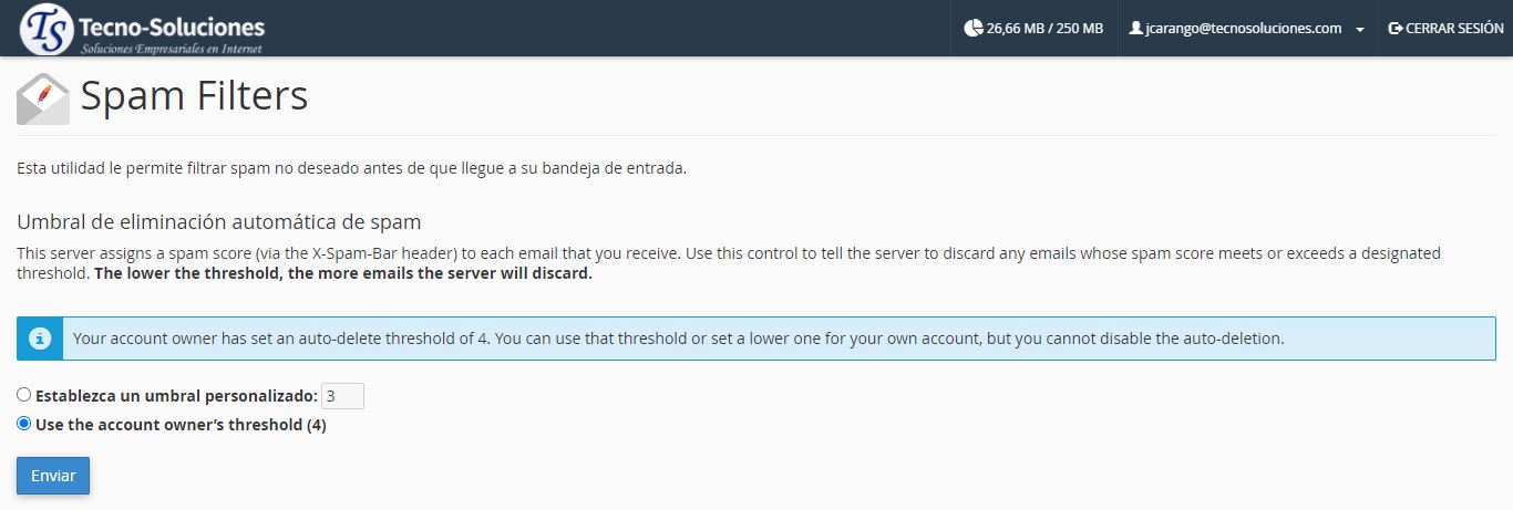 - Cuanto menor sea el umbral, más correos electrónicos descartará el servidor.