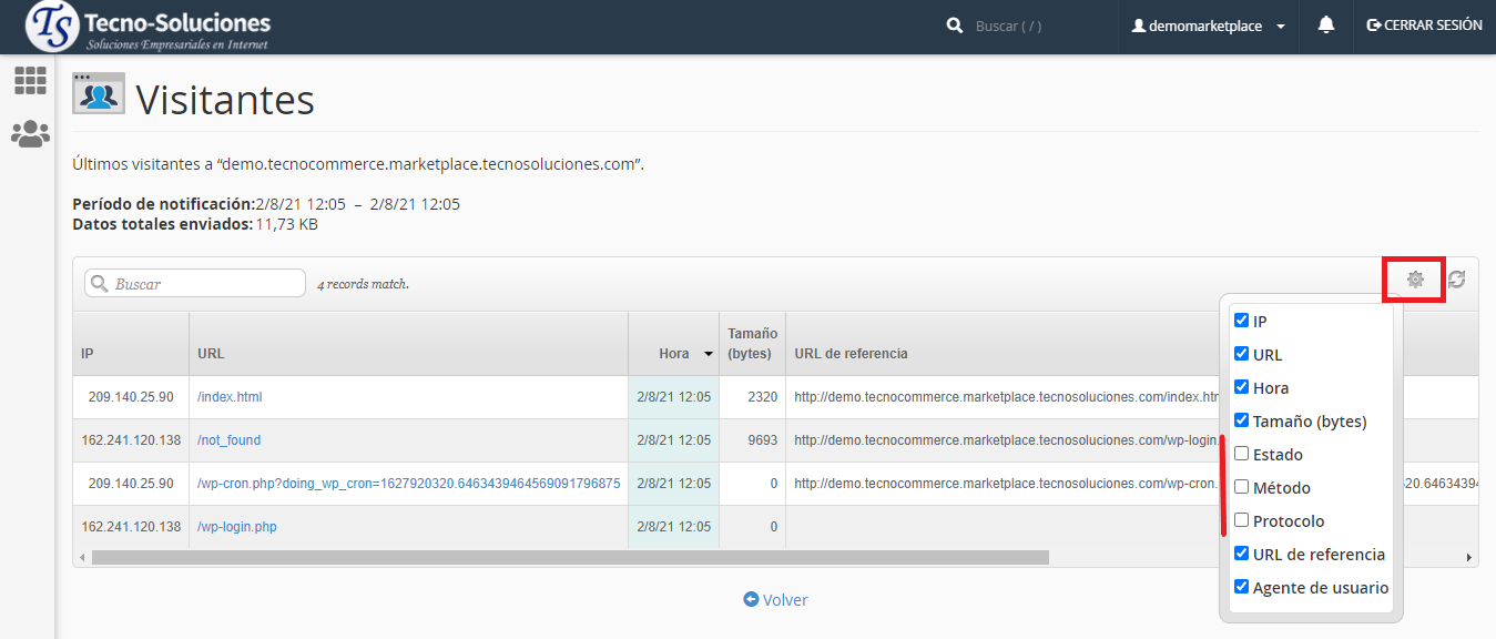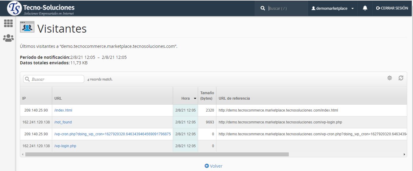 Esta interfaz muestra información detallada sobre visitas recientes a su sitio web. Esta información le ayuda a conocer a su audiencia y monitorear a los visitantes frecuentes para que pueda ajustar el contenido de su sitio web para que se ajuste a sus necesidades. También le ayuda a localizar y corregir errores, como páginas faltantes o enlaces rotos.