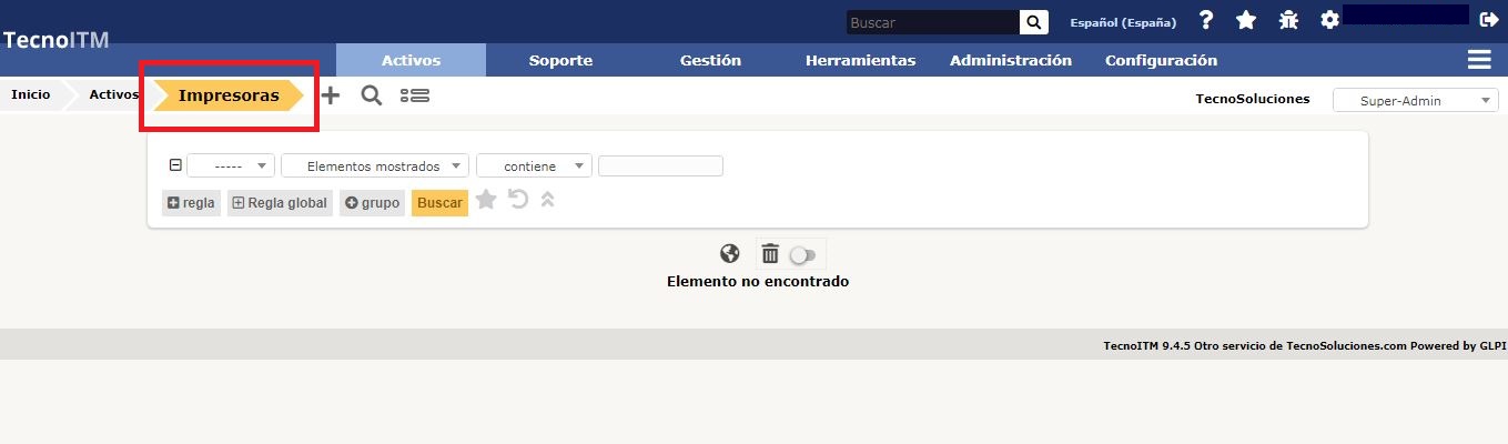 Las impresoras se pueden administrar desde el menú Activos > Impresoras