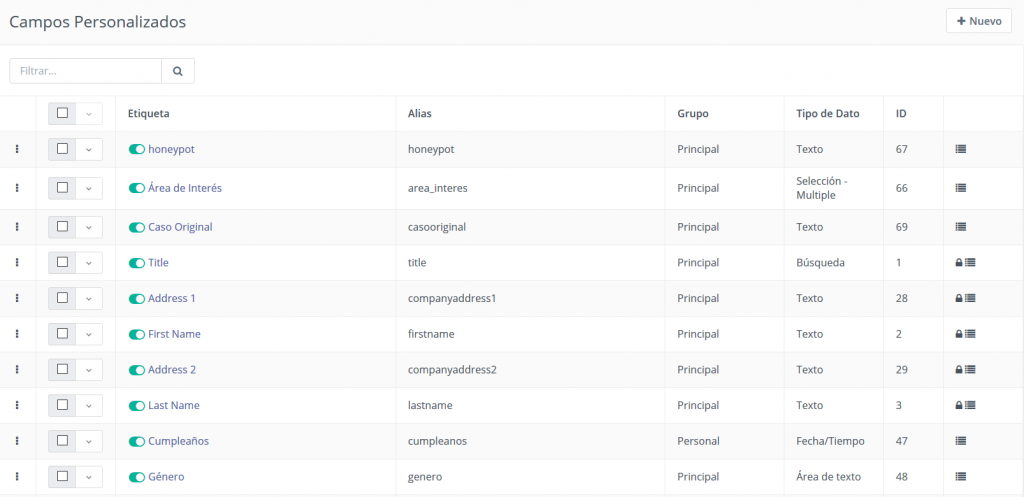 Con la instalación de TecnoMatic, se proporciona un conjunto de campos personalizados para las empresas, pero puede personalizar estos campos de acuerdo a su necesidad.