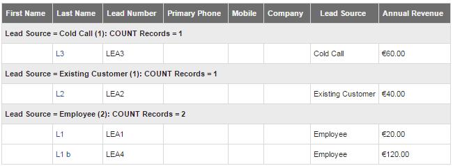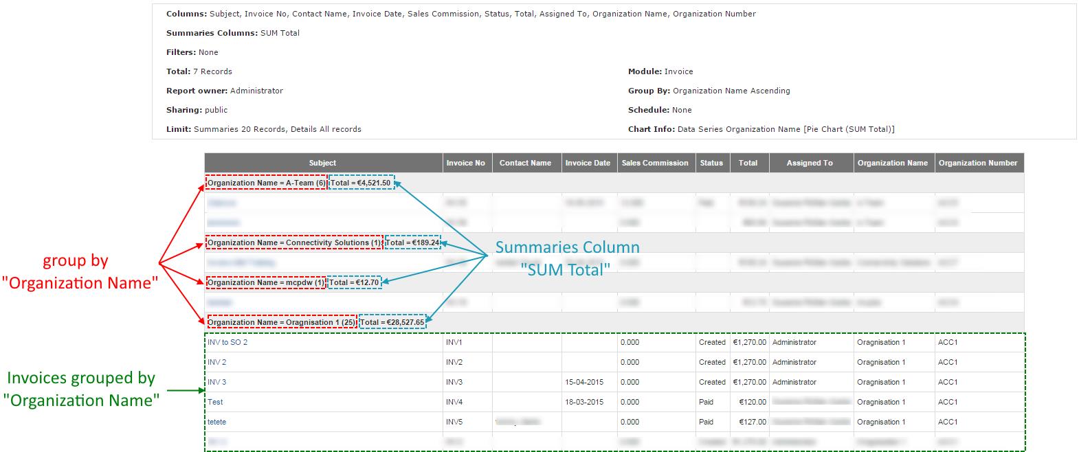 El reporte sumarizado con detalles está diseñado para usarse al realizar cálculos de datos agrupados por una columna seleccionada con detalles de registro mostrados. Puede definir cálculos para todos los datos del informe y definir un recuento limitado / ilimitado de los detalles de los registros mostrados.