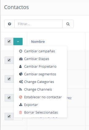 - Cambiar etapas: Le permite agregar/eliminar los contactos seleccionados a/desde la etapa.