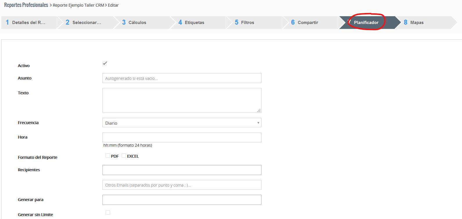 De forma predeterminada, el Planificador está inactivo. No olvide marcar “Activo” para ejecutar este informe utilizando el programador de flujo de trabajo.