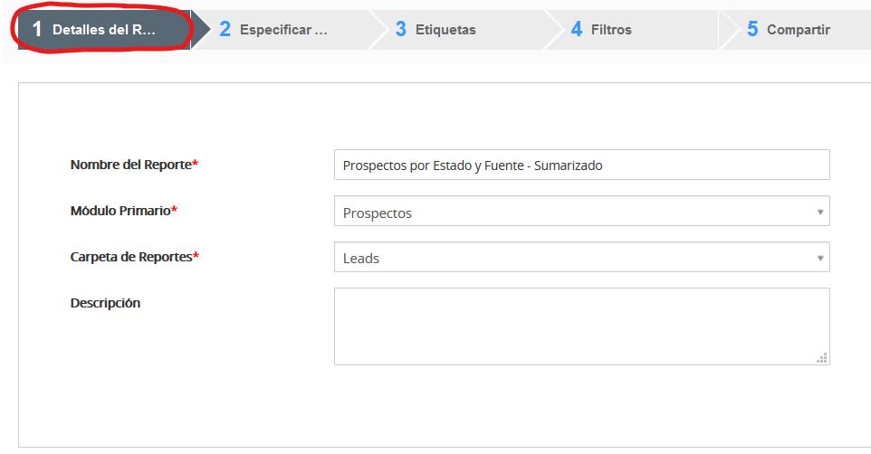En Detalles del Reporte, deberá proporcionar información básica del informe: