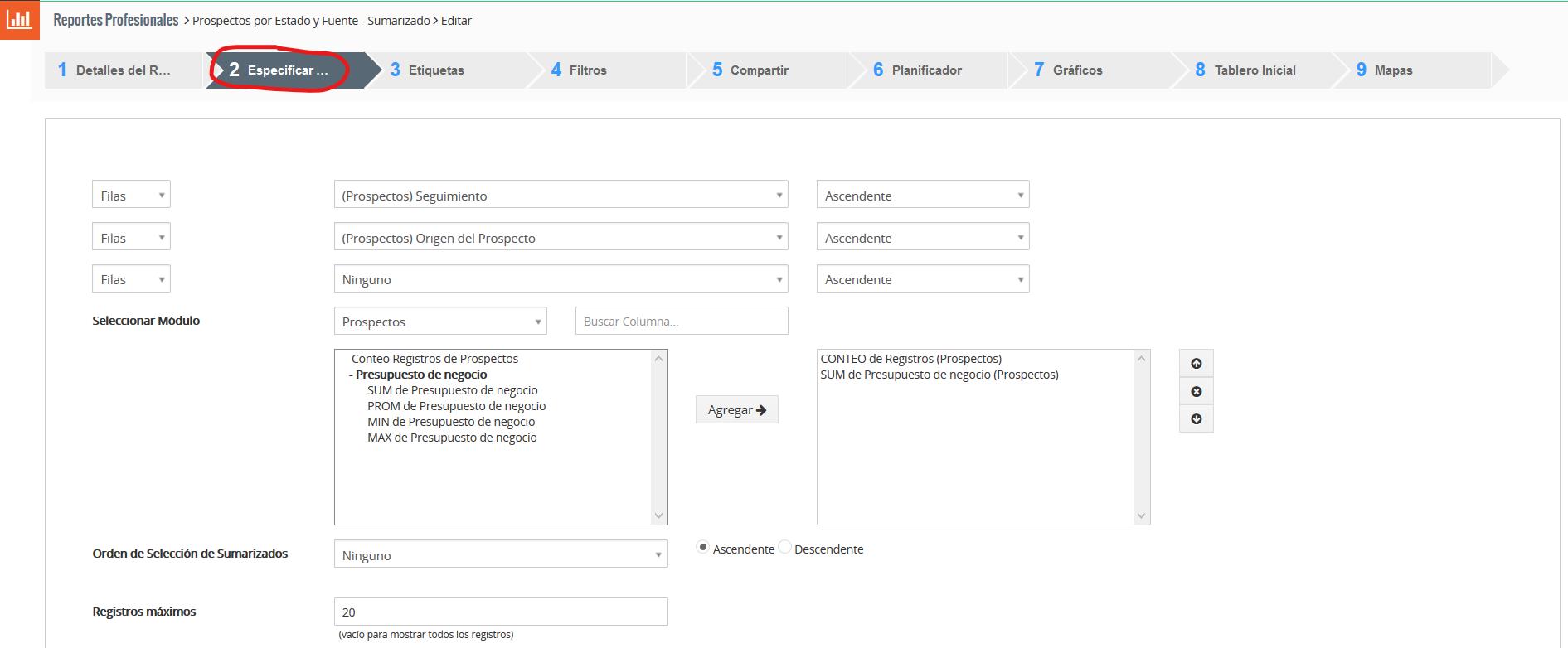 Este paso proporciona en caso de que desee un Informe Sumarizado, Sumarizado con Detalles y Matricial.