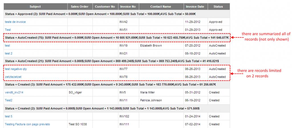 También hay orden de límite y clasificación, aquí puede establecer cuántos registros se muestran. Por ejemplo, el límite se establece en 2: