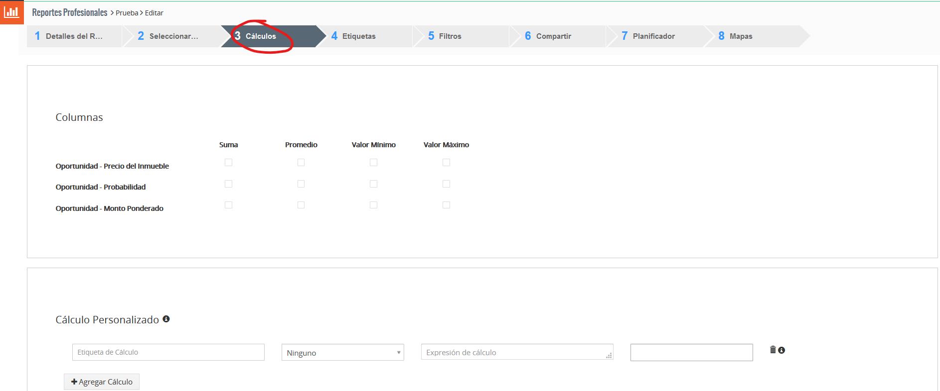 En Cálculo personalizado, puede definir la expresión de cálculos personalizados en función de los campos disponibles en los módulos de informe. Puede definir operaciones matemáticas básicas como: +, -, *, / o algunas otras expresiones: if… then… else… end (==, <=,> =, <,>) concat (…,…).