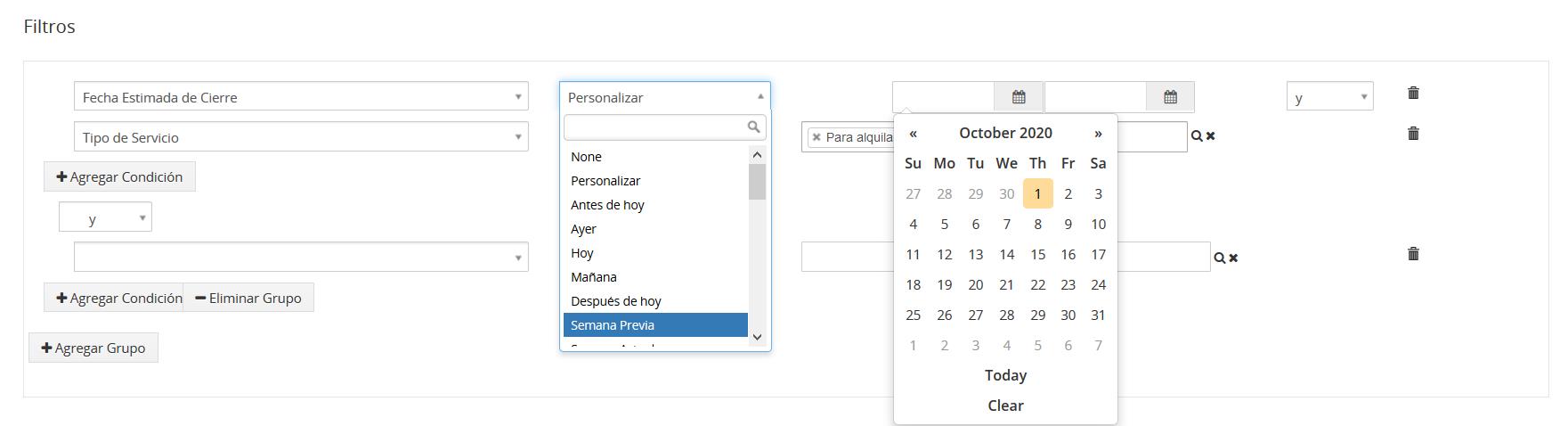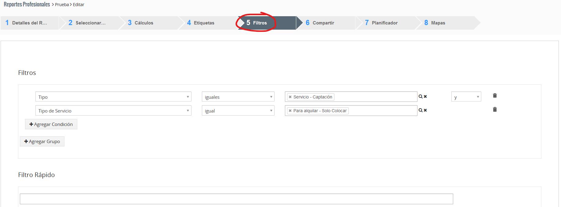 Aquí puede crear un filtro, agregar una nueva condición al filtro
