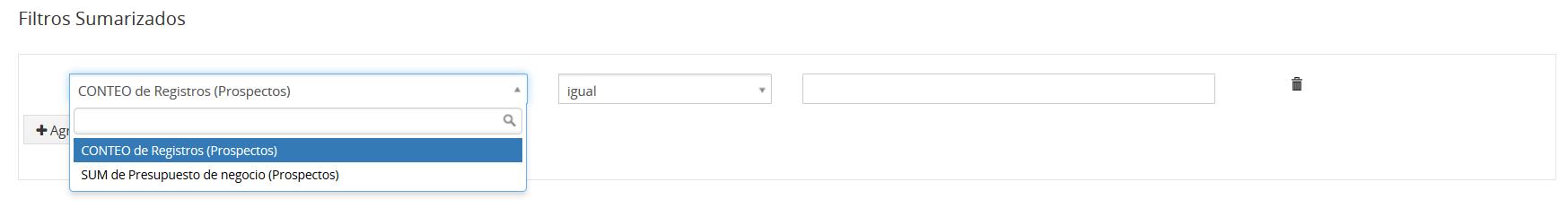 Opción poderosa para crear filtros a partir de campos sumarizados.