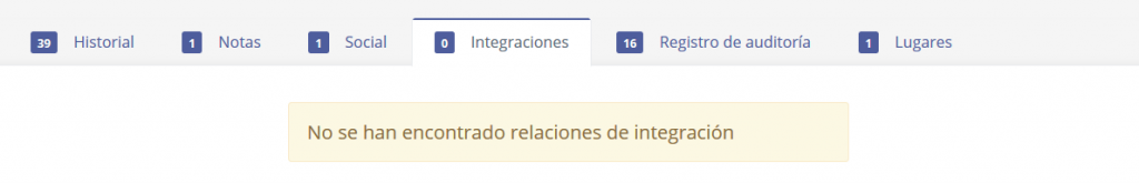 En el caso de que existan aplicaciones de integraciones con terceros que involucren al contacto, los datos se mostrarán en esta pestaña.