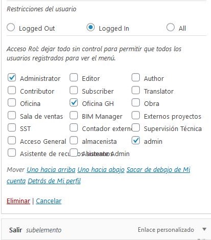 Esta opción nos permite restringir dicha opción del menú a todos los usuarios que han iniciado sesión.