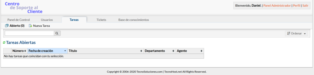 Panel de agentes > Tareas