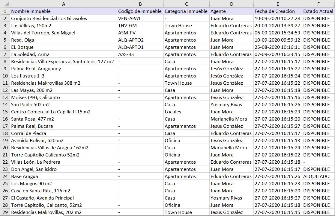 También puede guardar sus informes como archivos de Excel. Para guardar haga clic en el botón .