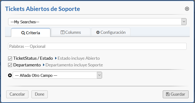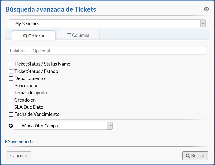 Los agentes ahora tienen la opción de personalizar las columnas que ven en una búsqueda personalizada, así como agregar un filtro rápido para reducir aún más los resultados mostrados.