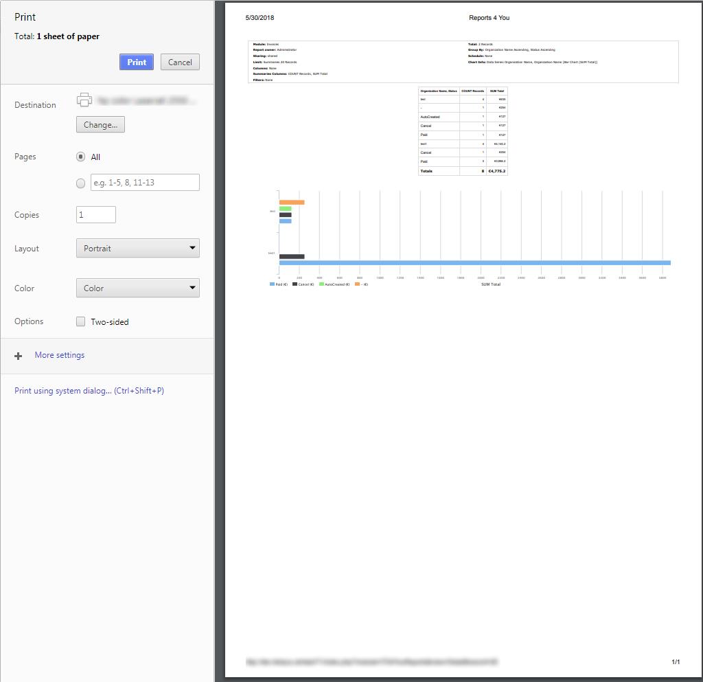 También existe la opción de imprimir sus informes directamente desde TecnoCRM, así como imprimir gráficos de exportación final. Haga clic en