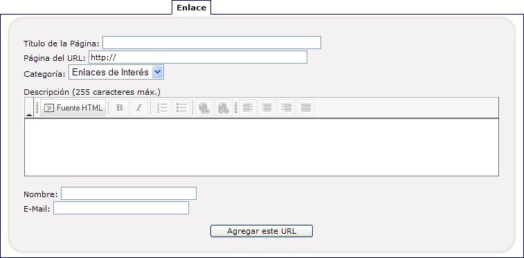 Consiste en llenar el formulario “Agregar un Nuevo Enlace” como se muestra a continuación: