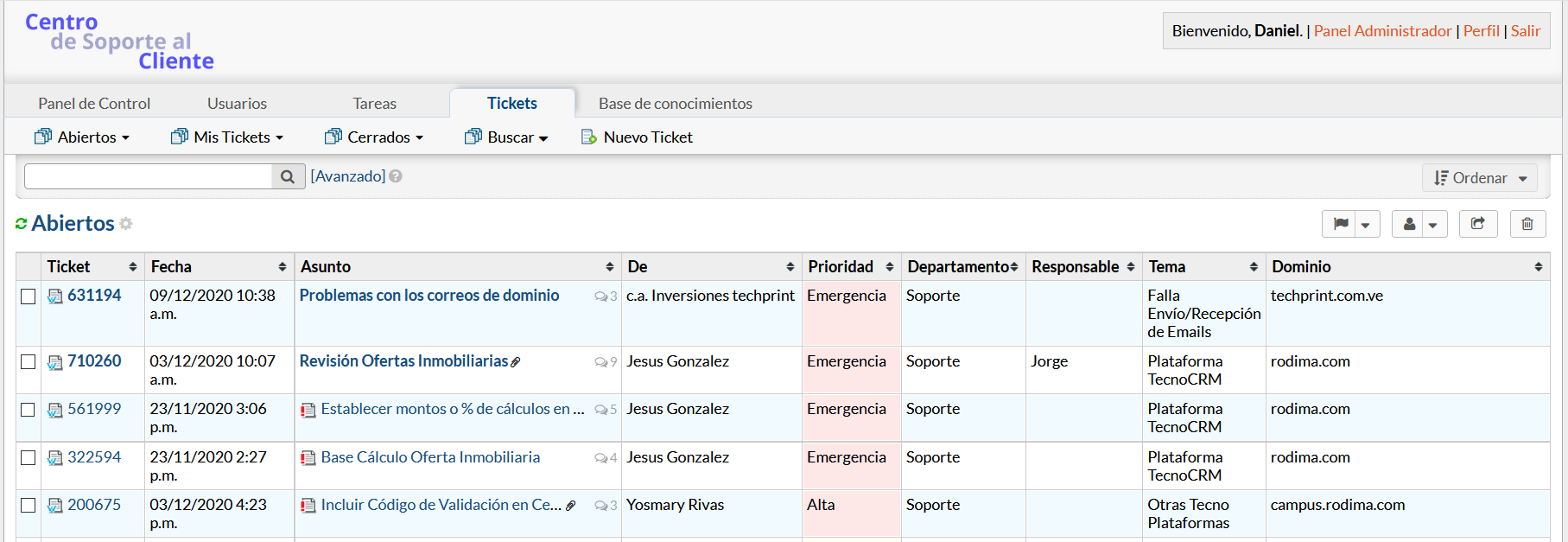 Panel de agente > Tickets