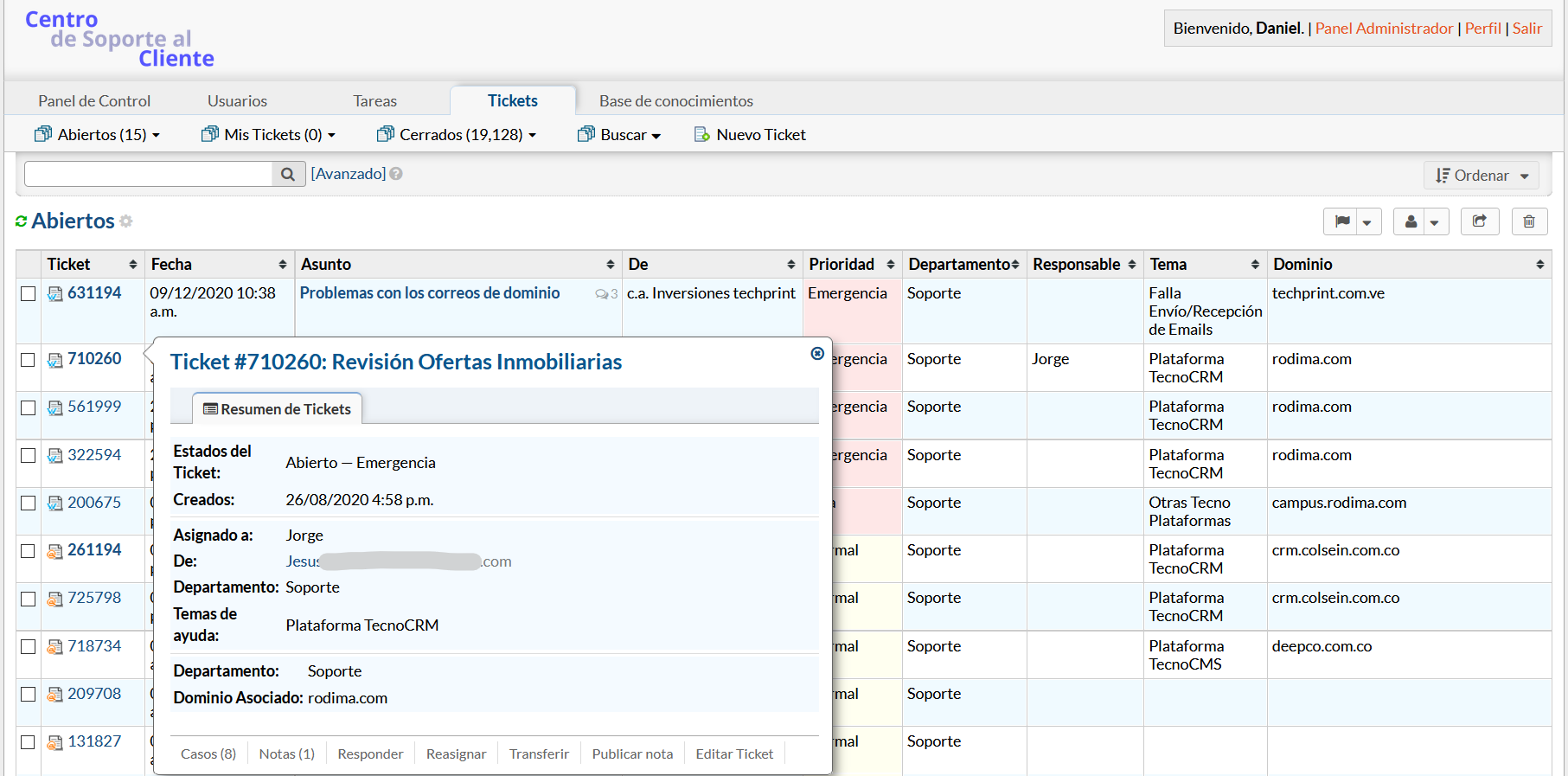 - Abiertos: estos son tickets abiertos en la mesa de ayuda que incluyen tanto tickets nuevos como tickets en los que el usuario final es el último encuestado. Estos tendrán un número de ticket en NEGRITA para dar la visual