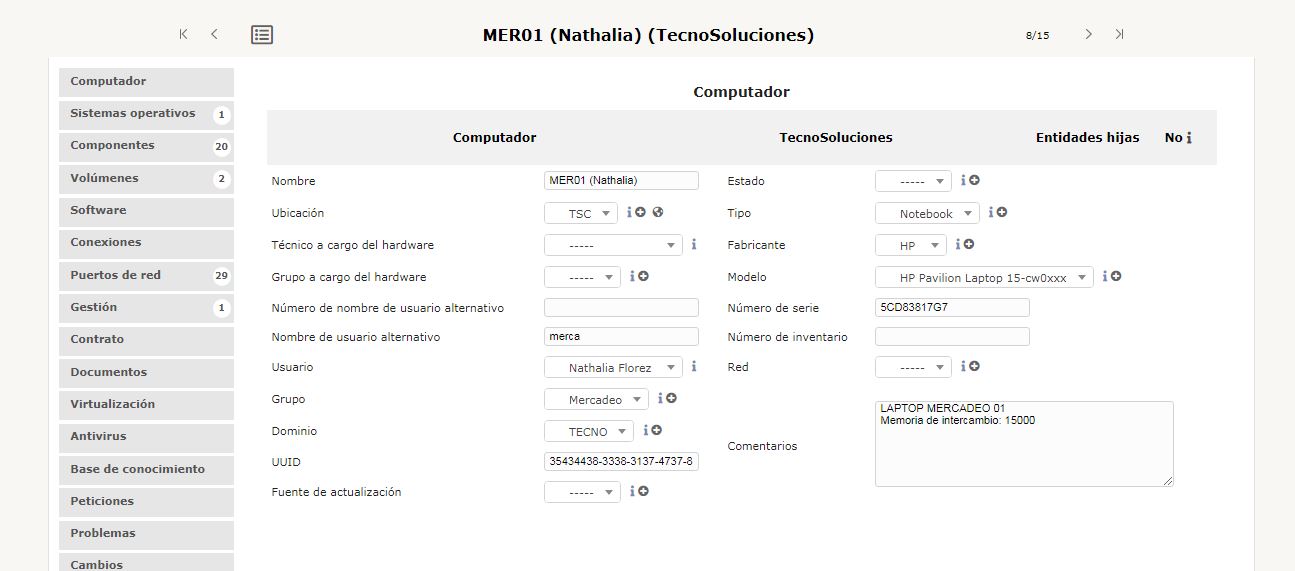 Para un elemento, toda la información se muestra en una sola página desde la pestaña Todos