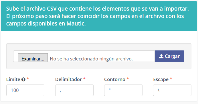 - Debe cargar el archivo CSV con los contactos que desea importar.