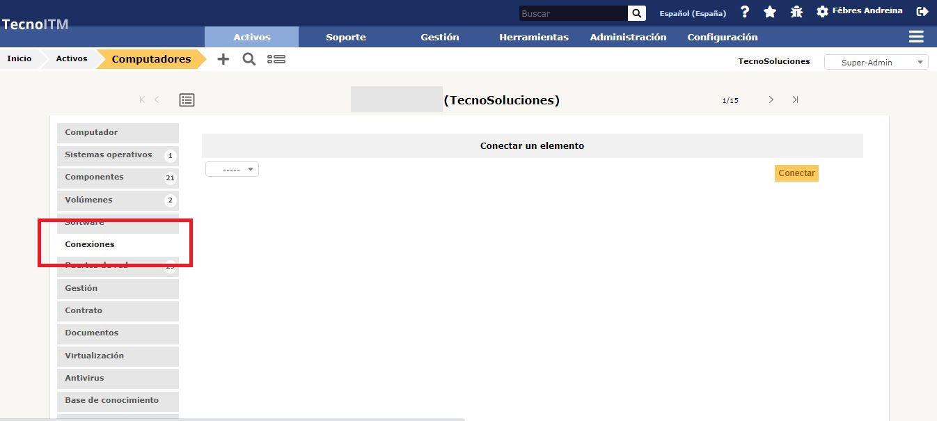 En esta pestaña, es posible administrar las conexiones asociadas al equipo