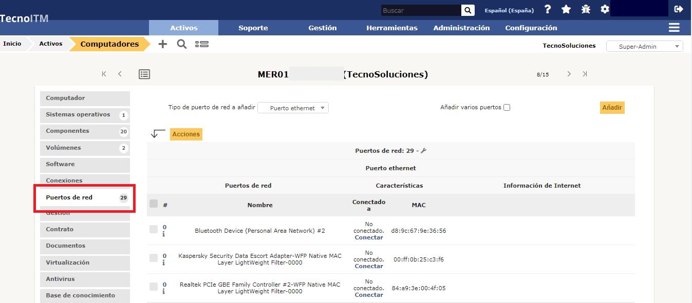 Gestión de puertos de red para artículos de inventario.