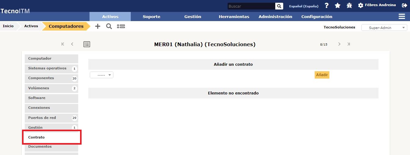 Muestra los contratos asociados con el equipo y le permite asociar nuevos.