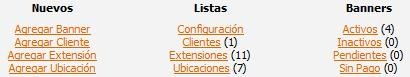 Igual sucede (de la manera antes descrita) con el resto del menú, esto es: Lista de Banners Pendiente y Lista de Banners sin Pago.
