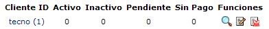 Cliente – Lista: Es un cuadro con la lista de los Clientes (Afiliados) que tienen banners en el Portal, vale decir que ésta lista es por Cliente y no por banner. El cuadro provee información por Cliente de: número de Banners Activos, número de Banners Inactivos, Pendiente, Sin Pago y Funciones importantes para Ver, Editar o Borrar los datos del cliente seleccionado.