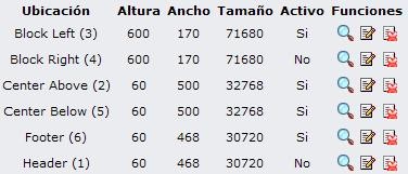 Lista de Ubicaciones: Es similar al anterior pero está relacionada con la ubicaciones (colocaciones) configuradas para los banners en el Portal.