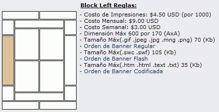 NOTA: Los banners, según su ubicación, no deben ser más ancho de 468pixels o ni más alto que 60 pixels si son horizontales y en el tope; ó de 360pixels de ancho o ni más alto que 60 pixels si son horizontales y en el centro; y para el caso de los verticales (rascacielos) no debe ser más ancho de 130pixels ni más alto que 60 pixels.