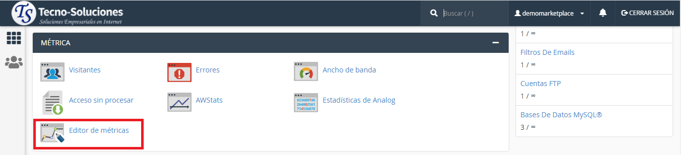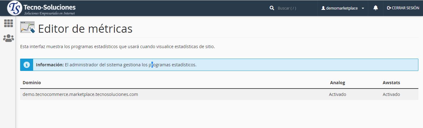 Esta interfaz le permite seleccionar programas de métricas para procesar sus archivos de registro y proporcionar análisis de tráfico para los dominios de su cuenta.
