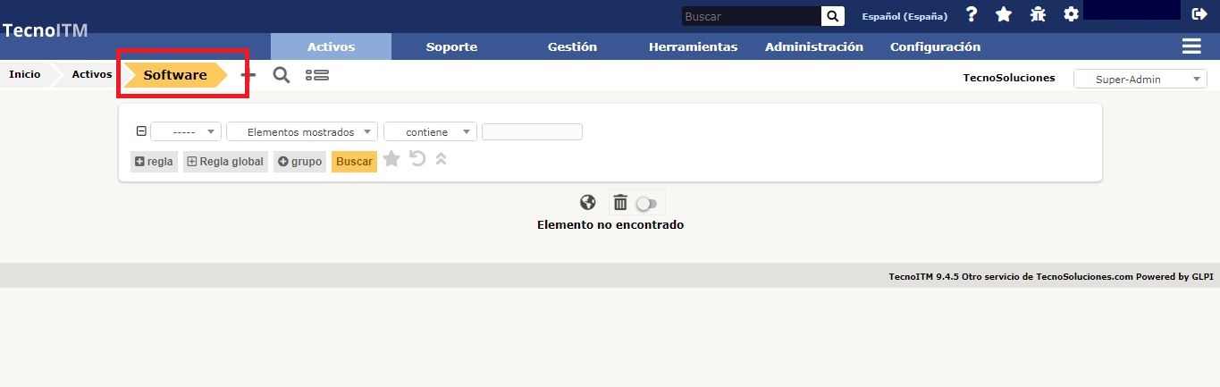 TECNOITM permite la gestión de software y sus versiones, así como las licencias (que pueden o no estar asociadas con versiones).