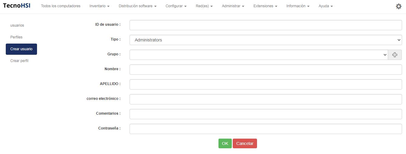 Haga clic en Crear usuario a la izquierda de la página, ingrese su información y haga clic en Ok.