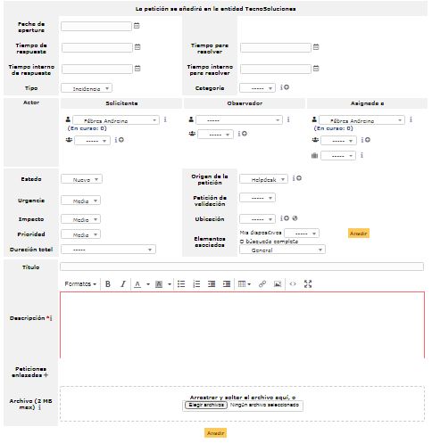 - Vaya al menú Soporte > Peticiones;