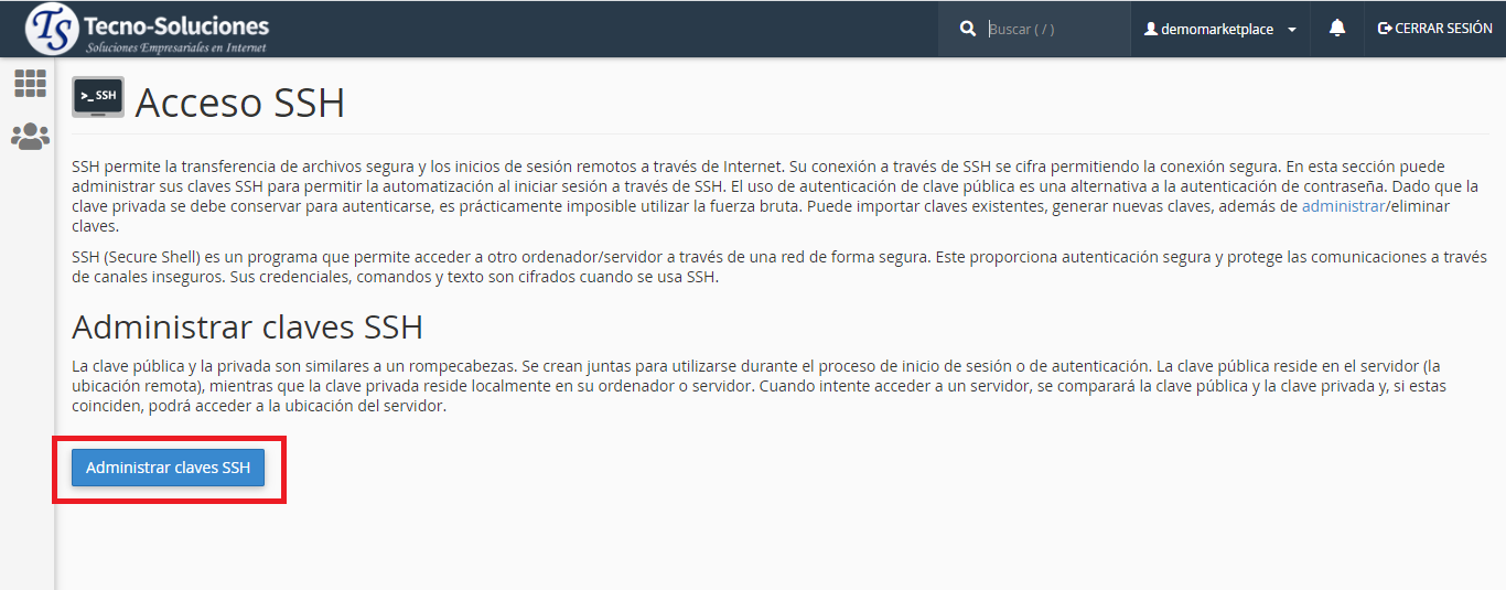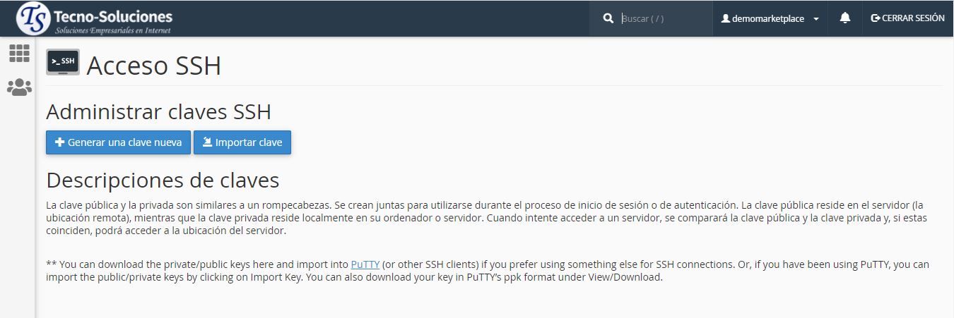 - Este paso es opcional si su proveedor de alojamiento establece las claves SSH ajuste a