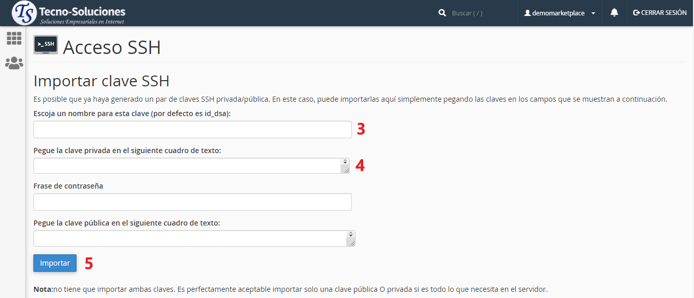 Para importar una clave SSH existente, realice los siguientes pasos: