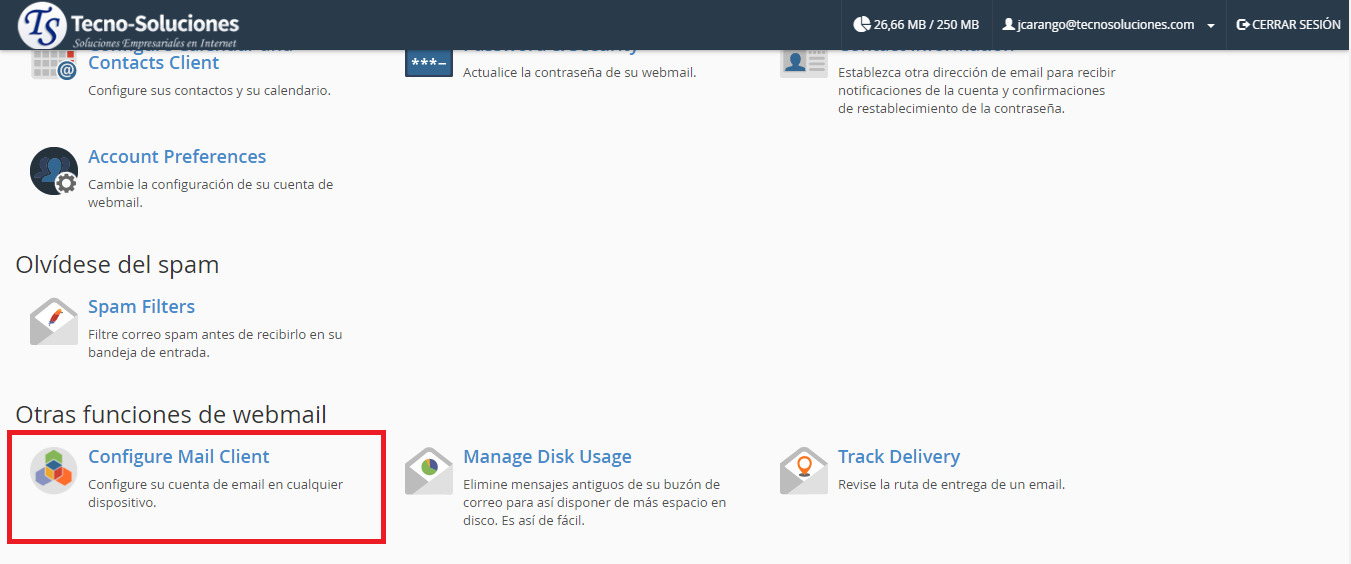 Configuración manual del cliente de correo
